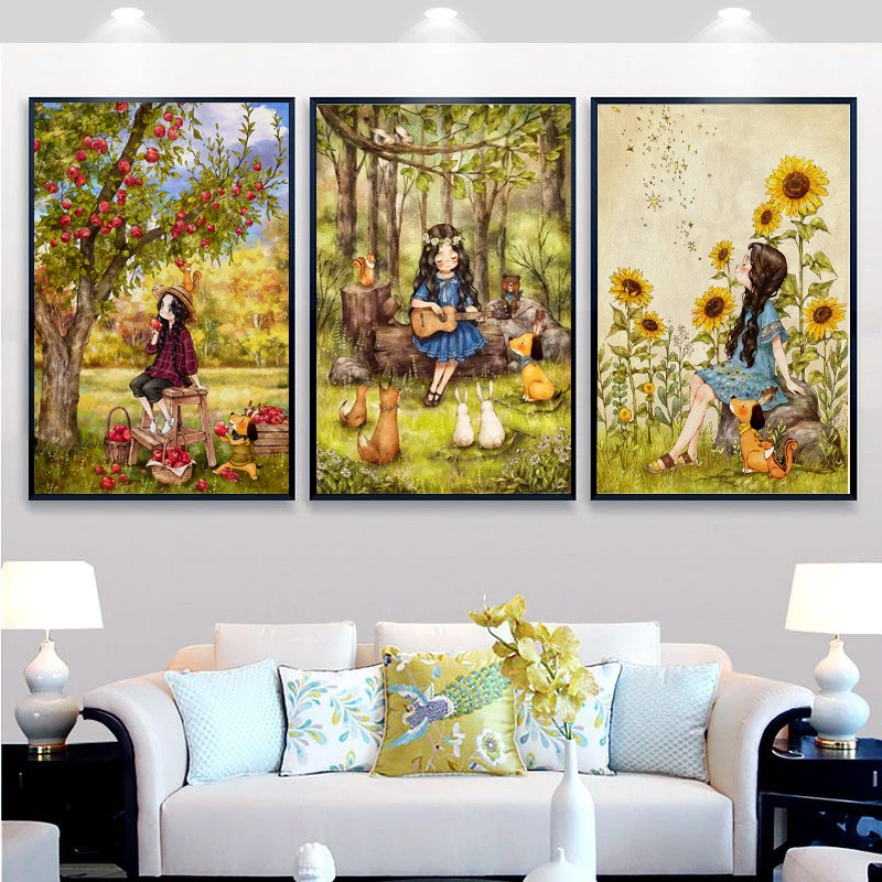 53*72 см Вышивка крестом из мультфильма лесная девушка, для рукоделия, украшения гостиной, наборы для вышивки, набор из шелковой нити