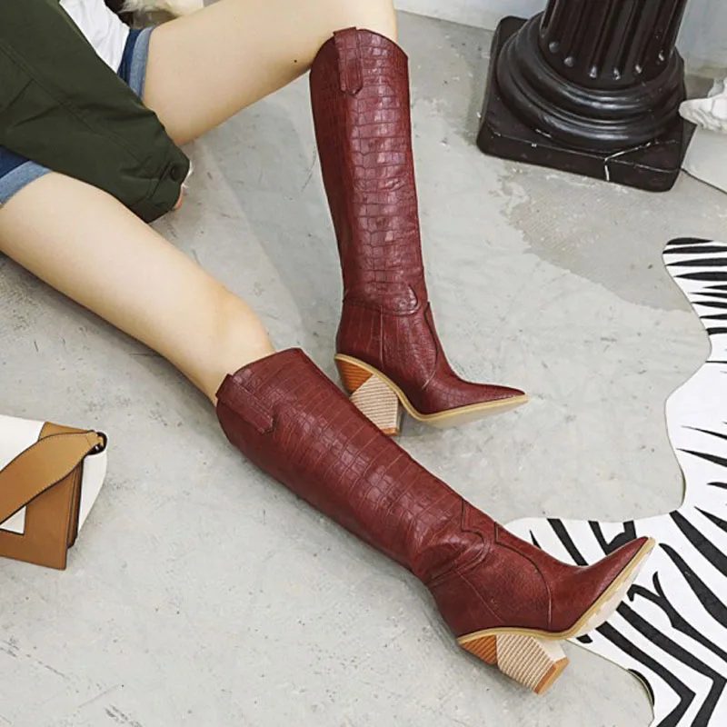 Сапоги до колена; Ковбойские сапоги для женщин; Длинные зимние сапо...