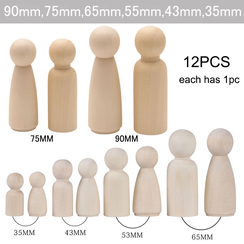 12 шт. (35 мм-90 мм) деревянные колышки для кукол сделай сам для дома детские украшения куклы мальчиков, девочек Изделия из дерева для детской комнаты настенный Декор деревянные куклы Pegdolls