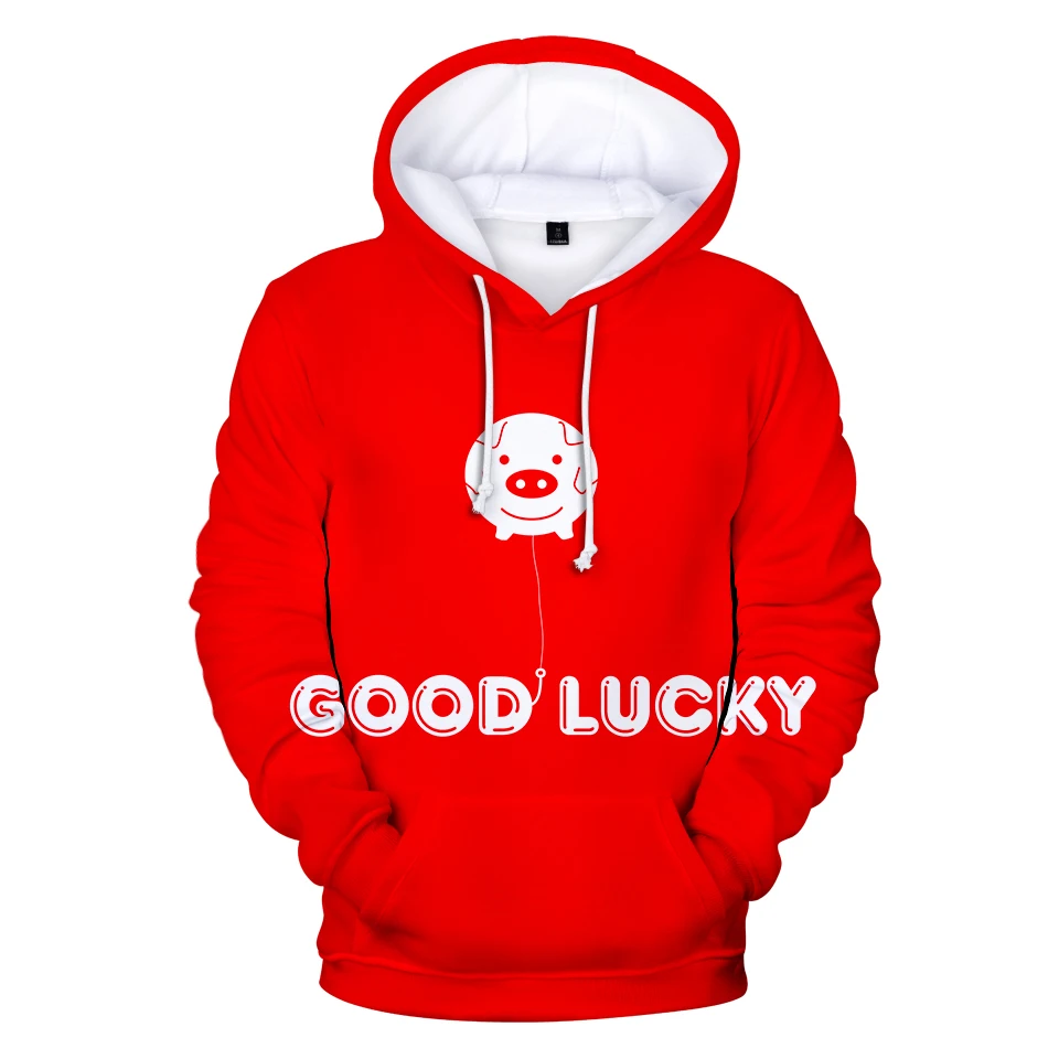 Толстовка унисекс с объемным рисунком, Свитшот в стиле оверсайз, с рисунком милых животных, свитшот на удачу, Повседневная Уличная одежда, зима