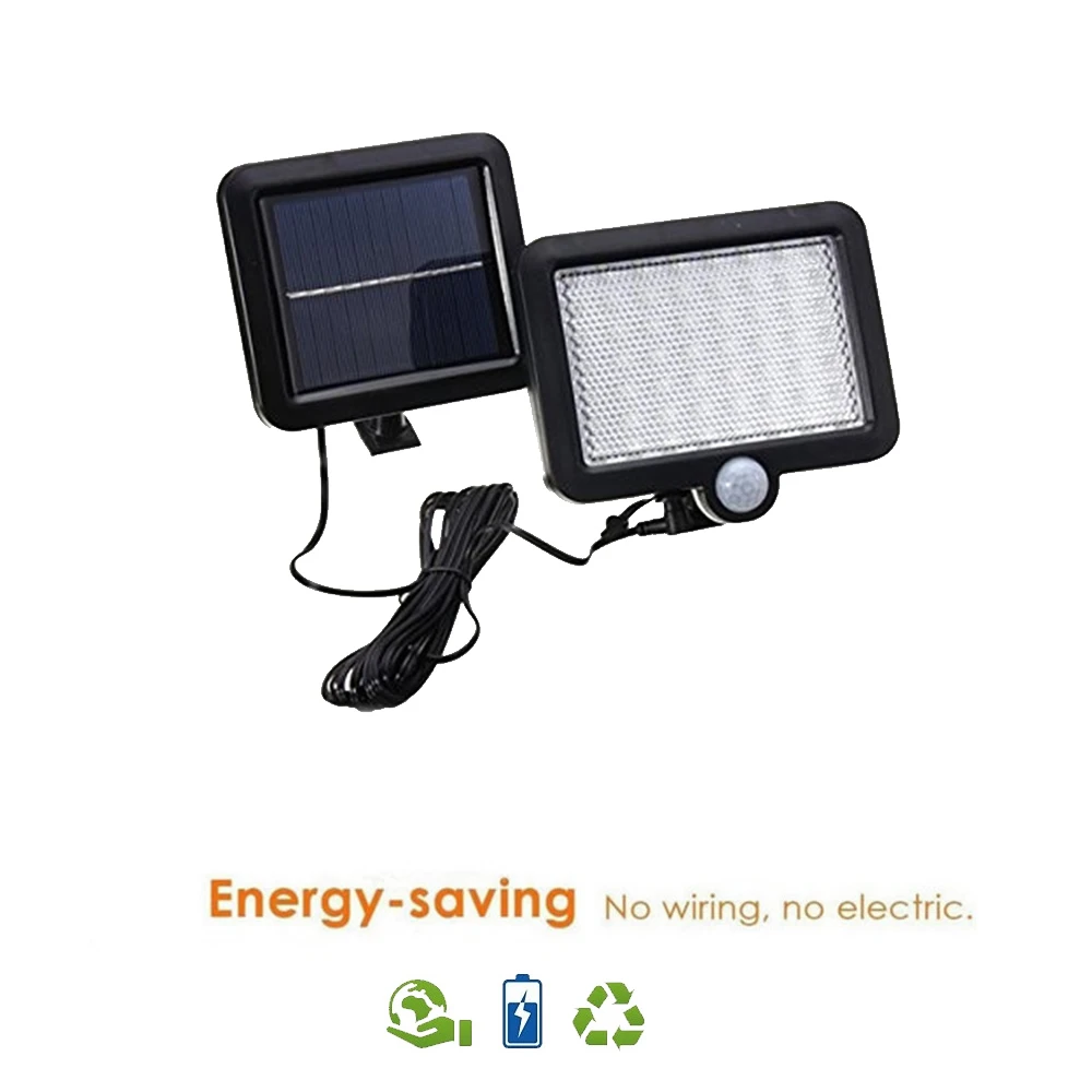 56 светодиодный светильник на солнечных батареях на открытом воздухе, садовый светильник на лужайке, PIR датчик движения, настенный светильник, водонепроницаемый инфракрасный датчик, светильник, разделенная солнечная панель, 5 м кабель