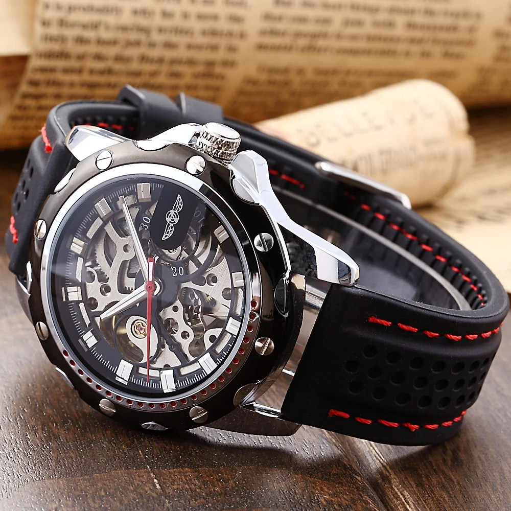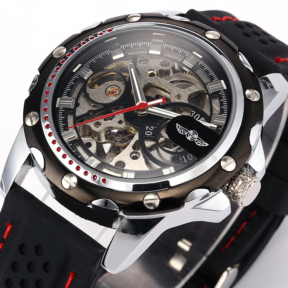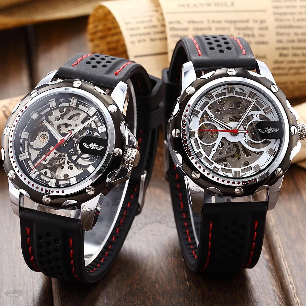 Часы наручные Winner мужские с силиконовым ремешком, спортивные автоматические механические часы-скелетоны в стиле стимпанк, с автоподзаводом