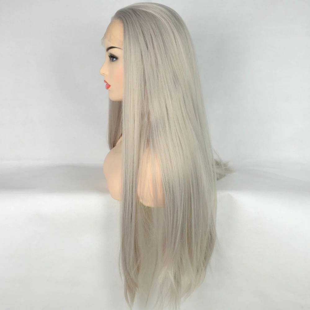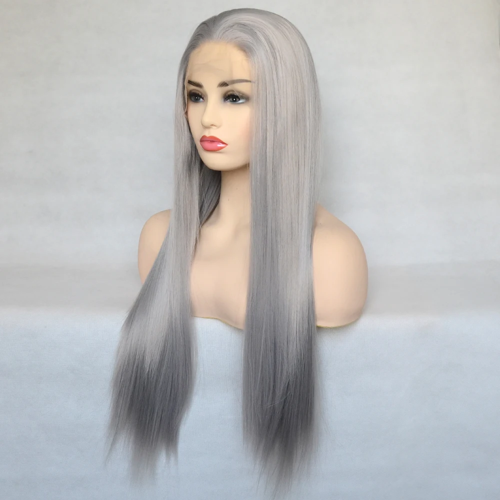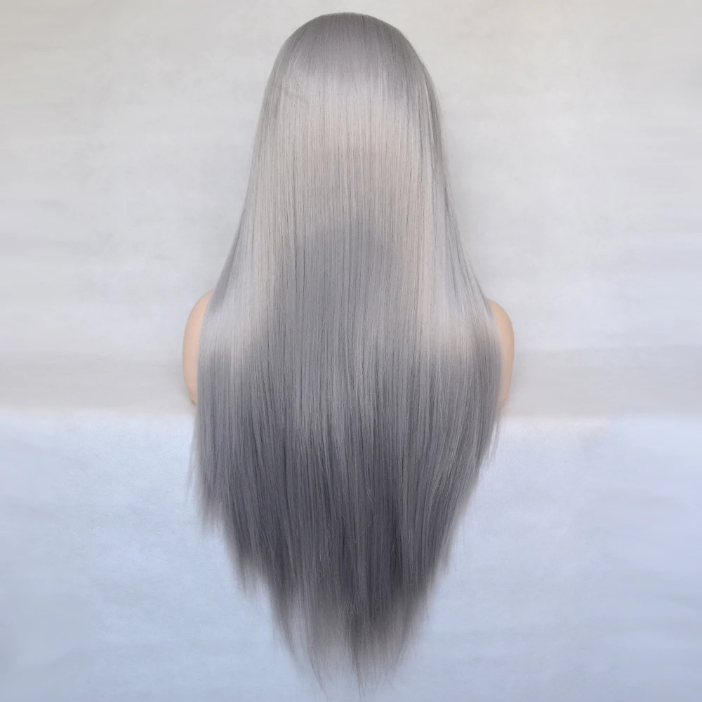 Парик женский, синтетический, серебристо-серый, из термостойкого волокна