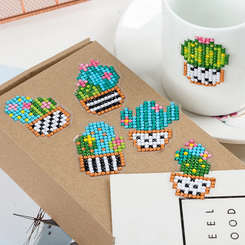 HeeBenor Factory Store 6 шт., алмазная Наклейка С КАКТУСОМ, алмазная живопись DIY, Алмазная мозаика для украшения чашки, книги, телефона, подарки, игрушка