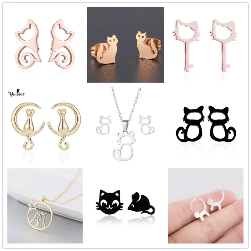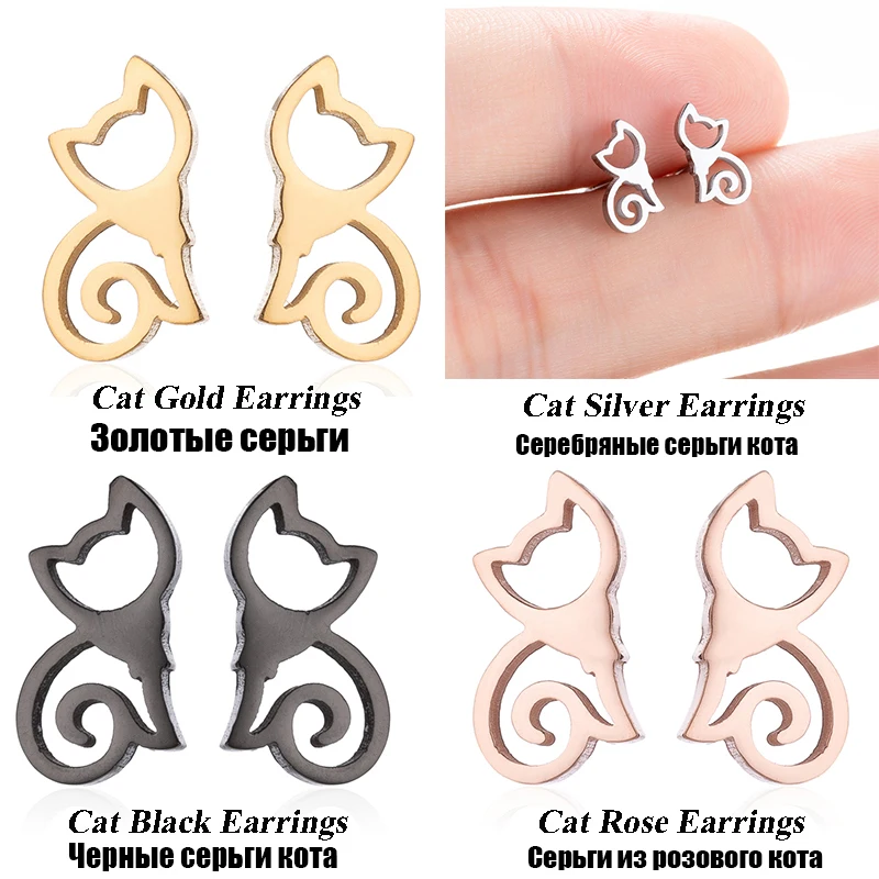 Ювелирные изделия в виде кота для девочек, милые серьги из нержавеющей стали, подарок для детей, женские серьги в виде кота