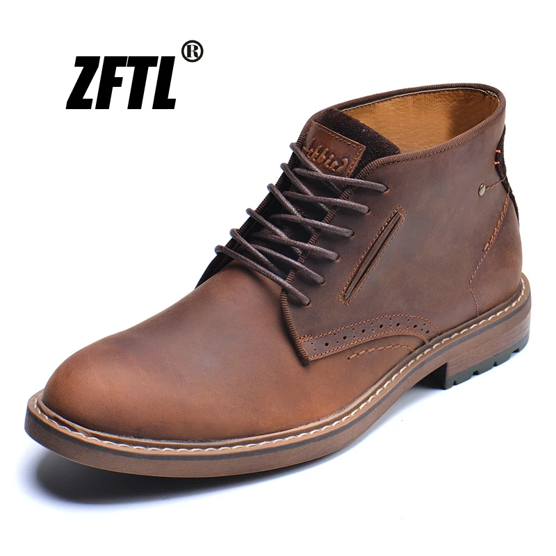 Мужские ботинки из кожи Крейзи Хорс ZFTL, повседневная обувь большого размера, мужские ботильоны на шнуровке, 0154