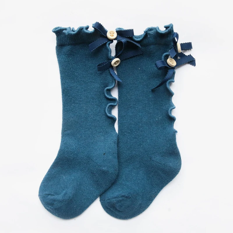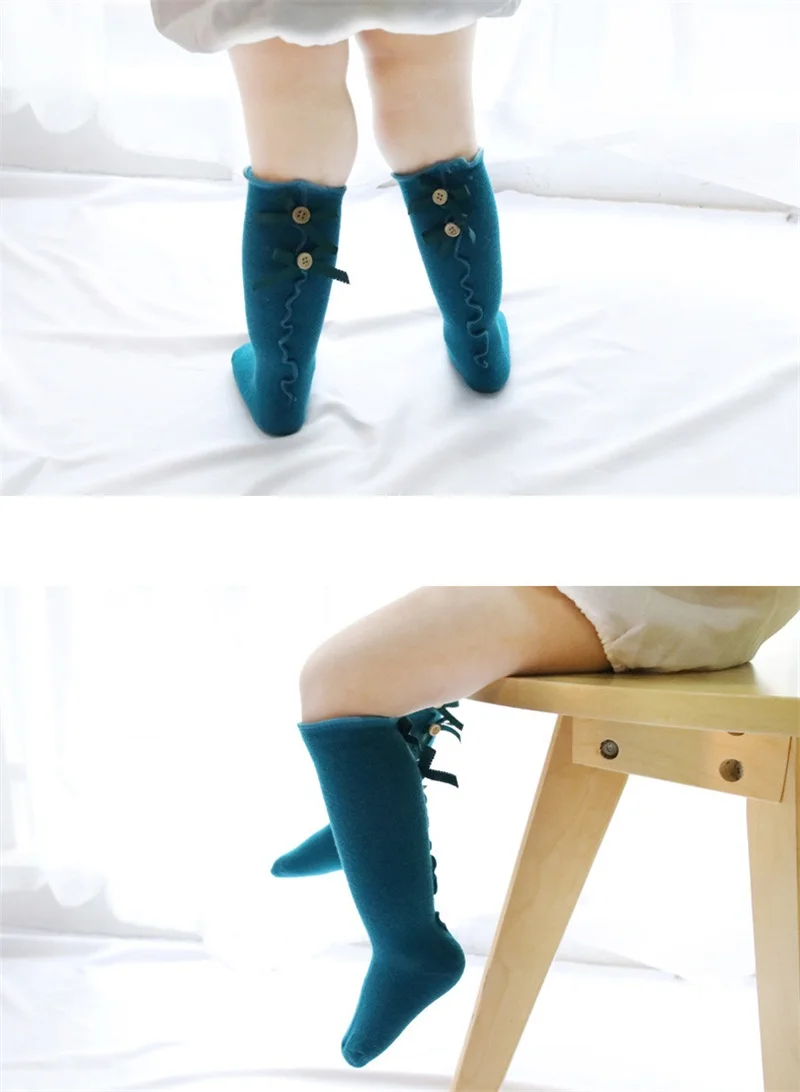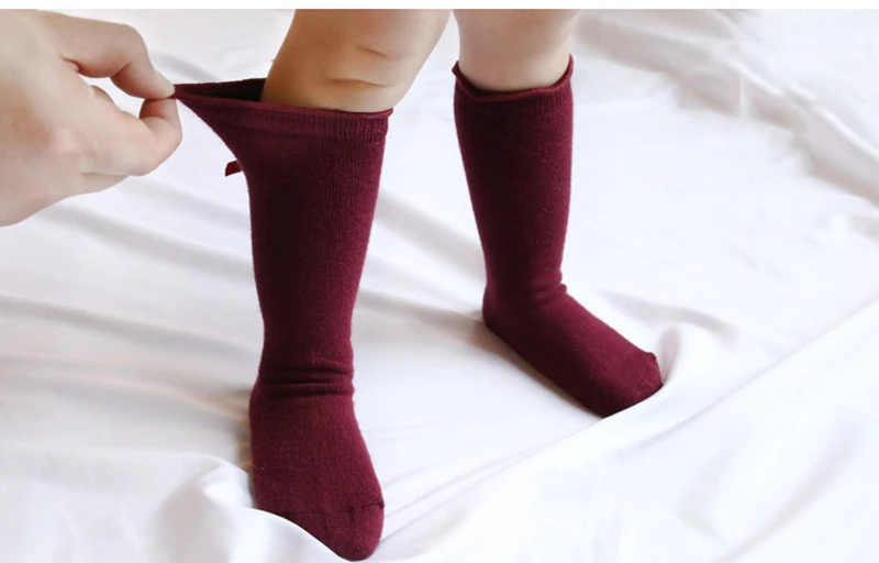 10 шт.партия хлопковые носки для малышей милые зимние длинные теплые гетры с бантиками для детей, мягкие гольфы для новорожденных