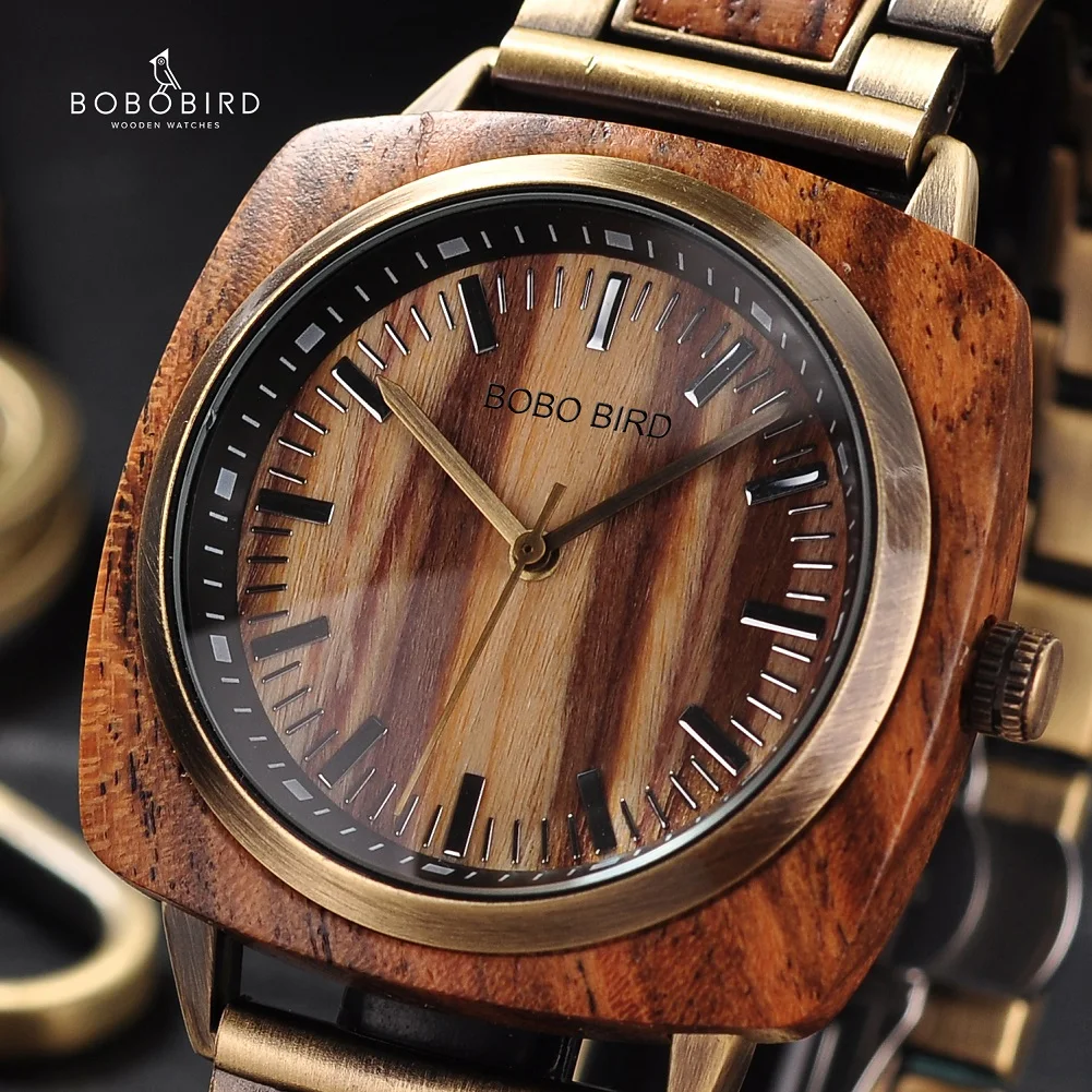 BOBO BIRD Relogio Masculino мужские часы деревянные классические квадратные наручные часы на заказ водонепроницаемый деревянный ремешок рождественский подарок для Него в коробке