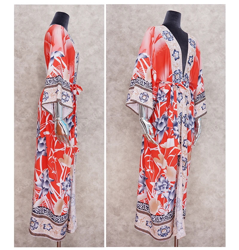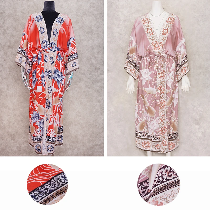 2022 накидки для бикини, Розовое женское платье-кимоно с принтом в стиле бохо, женская пляжная туника, накидка для плавания Q996