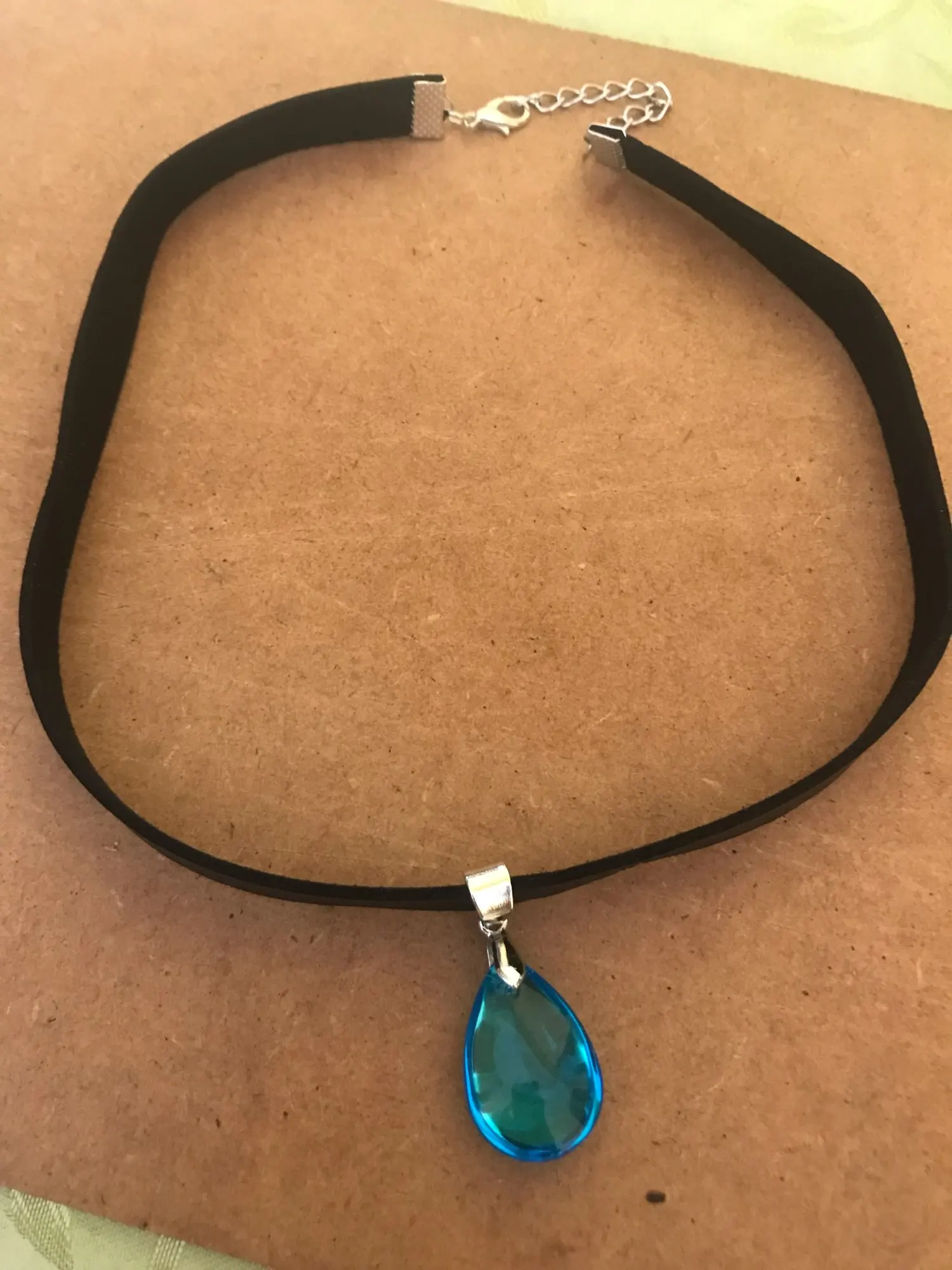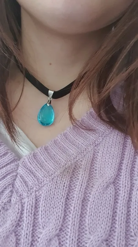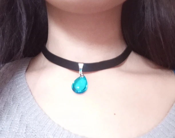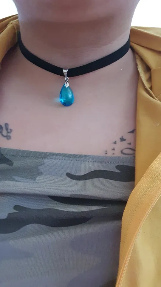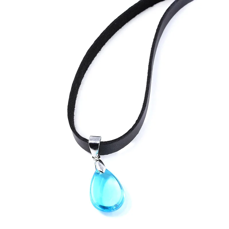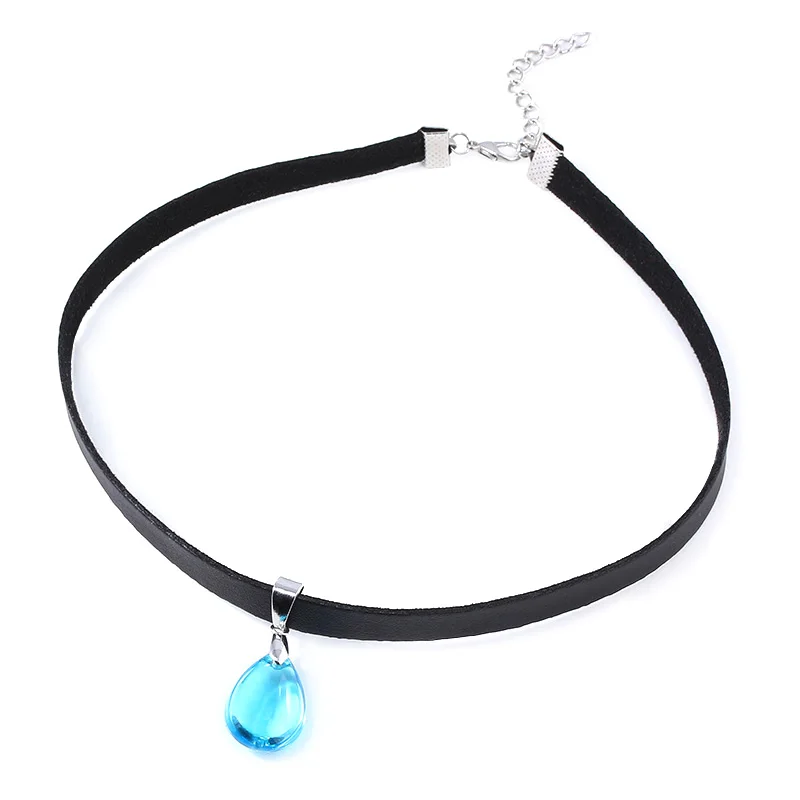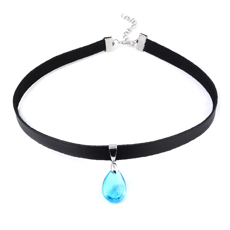 Цепочка-чокер из кожи с синим кристаллом для косплея Амано Хина, ожерелье-чокер с подвеской в виде капли дождя, Ювелирное Украшение