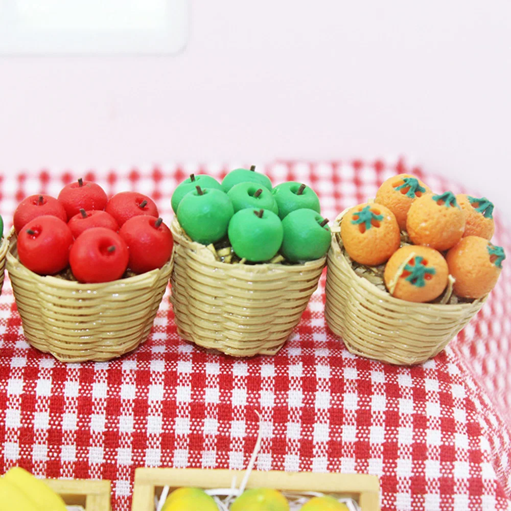 Миниатюрные аксессуары для кукольного домика 112, миниатюрная каучуковая корзина для фруктов, модель апельсинового яблока винограда, игрушки для украшения кукольного домика