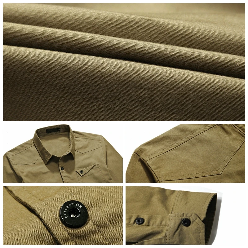 Рубашка WBDDT Мужская в стиле милитари, хлопок, хаки, Повседневная ...