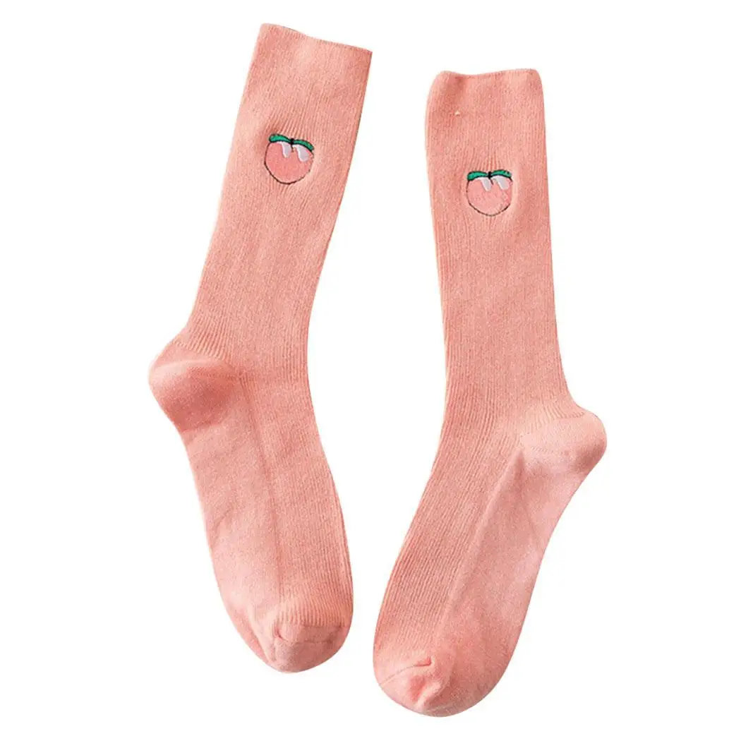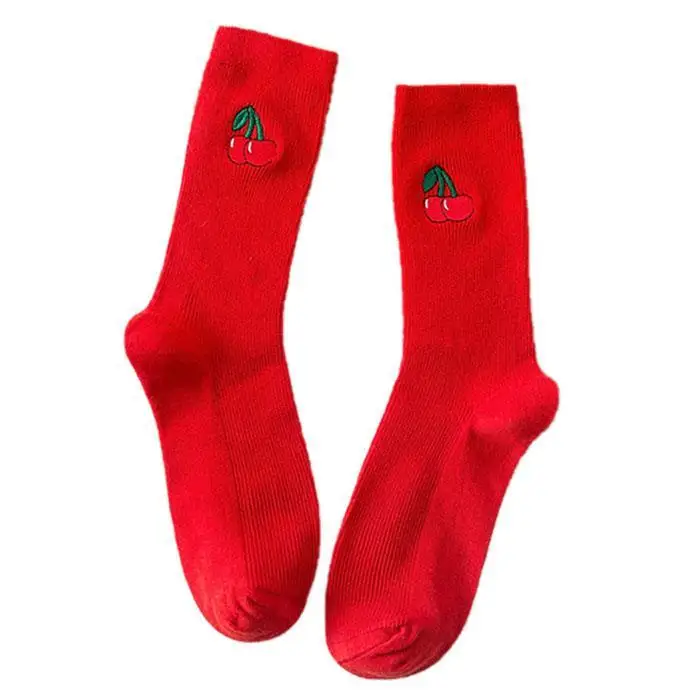 Модные удобные носки из хлопка с рисунком фруктов; сезон весна-осень; носки средней длины без пятки 0,045 кг; носки средней длины с принтом
