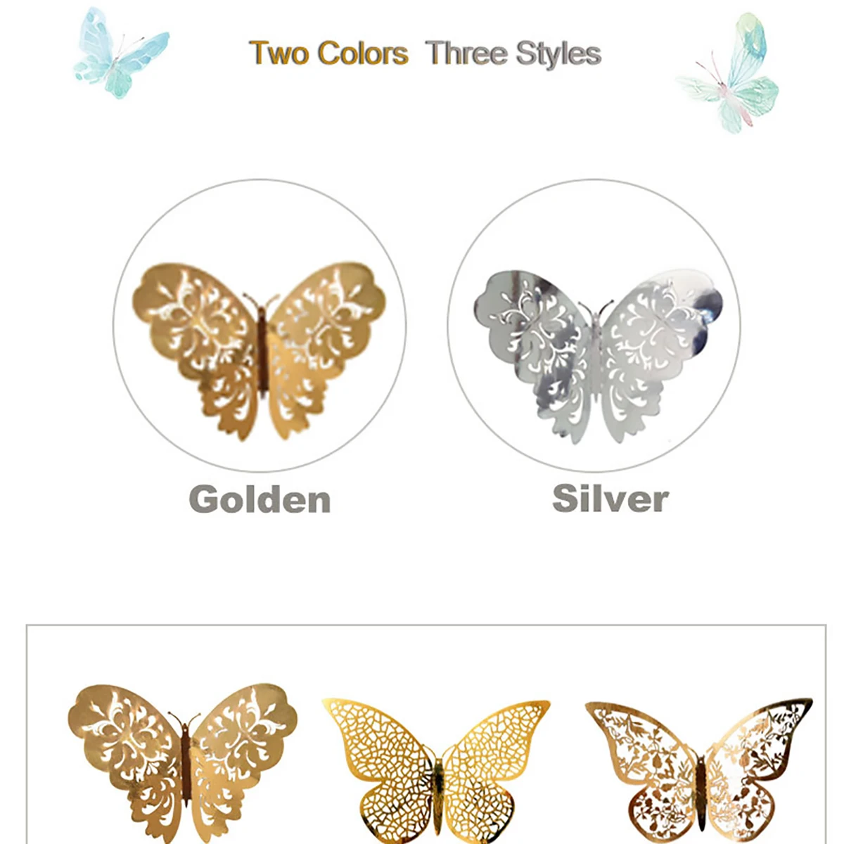 3D наклейки на стены, 12 шт.компл., пустотелые бабочка на холодильник наклейки для детских комнат, домашний декор стен, сделай сам, декоративные наклейки