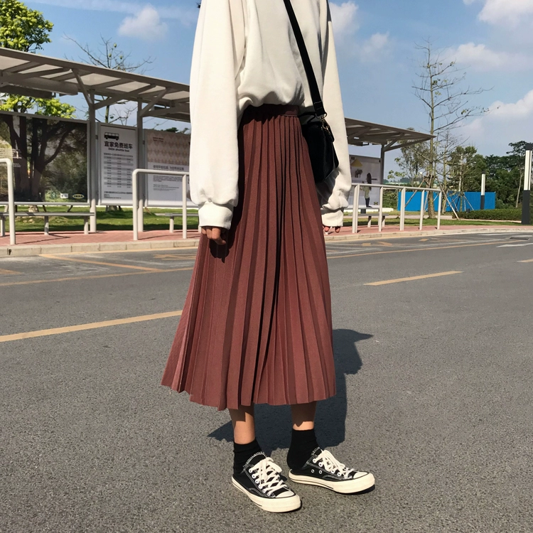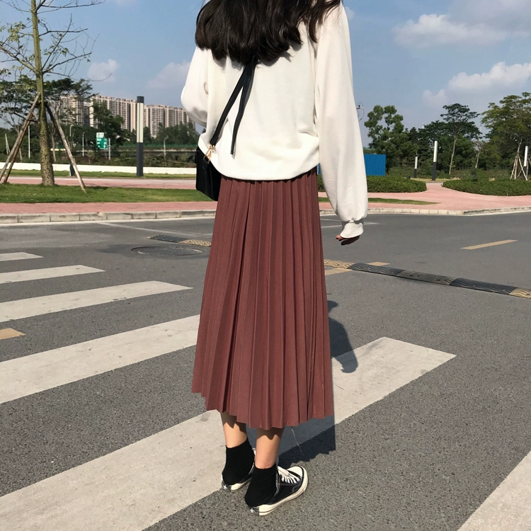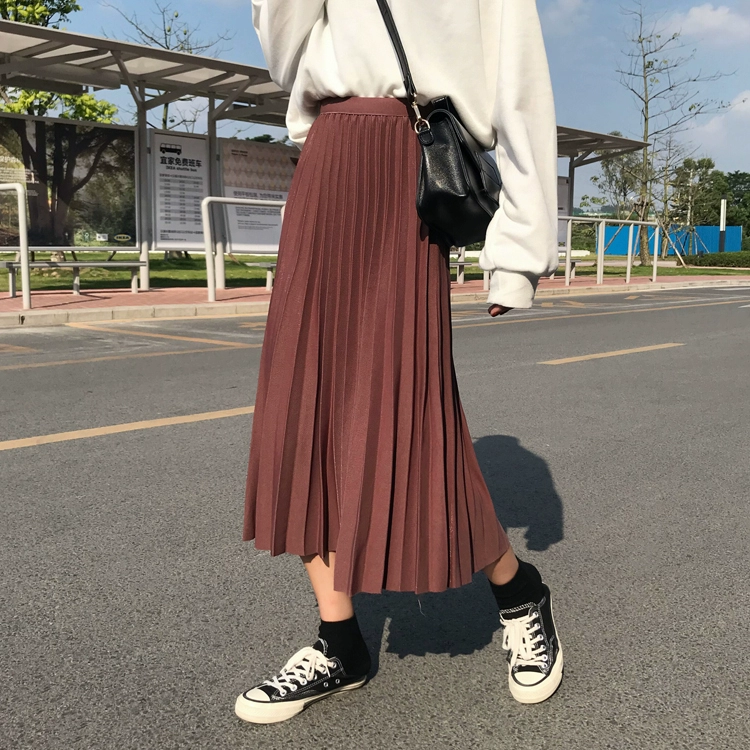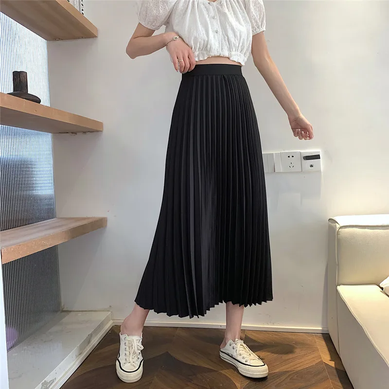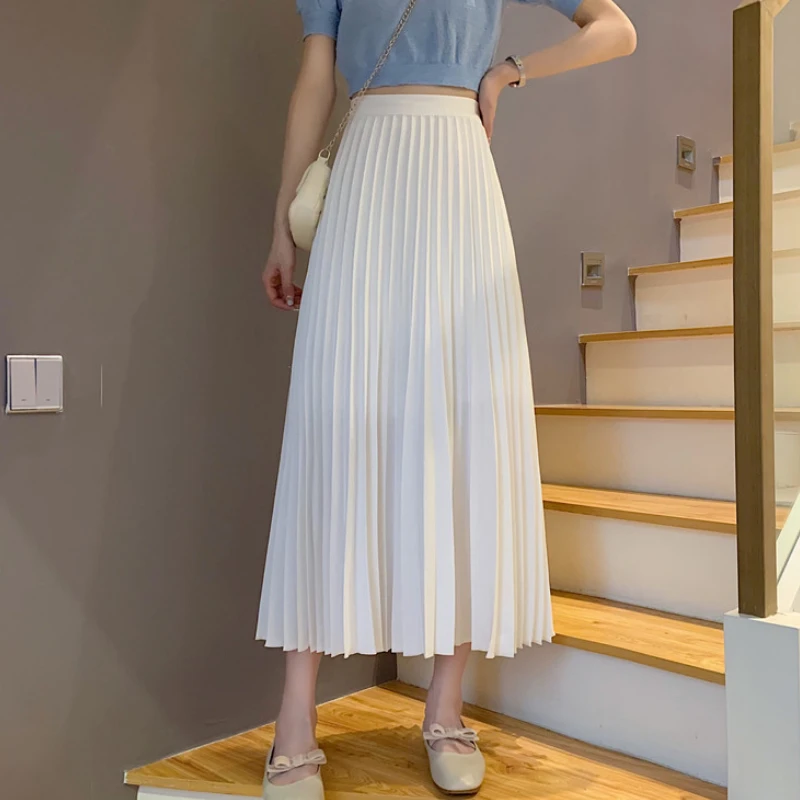 Женская плиссированная юбка с высокой талией, длинная драпированная Юбка-миди в рубчик на осень и зиму, 2022