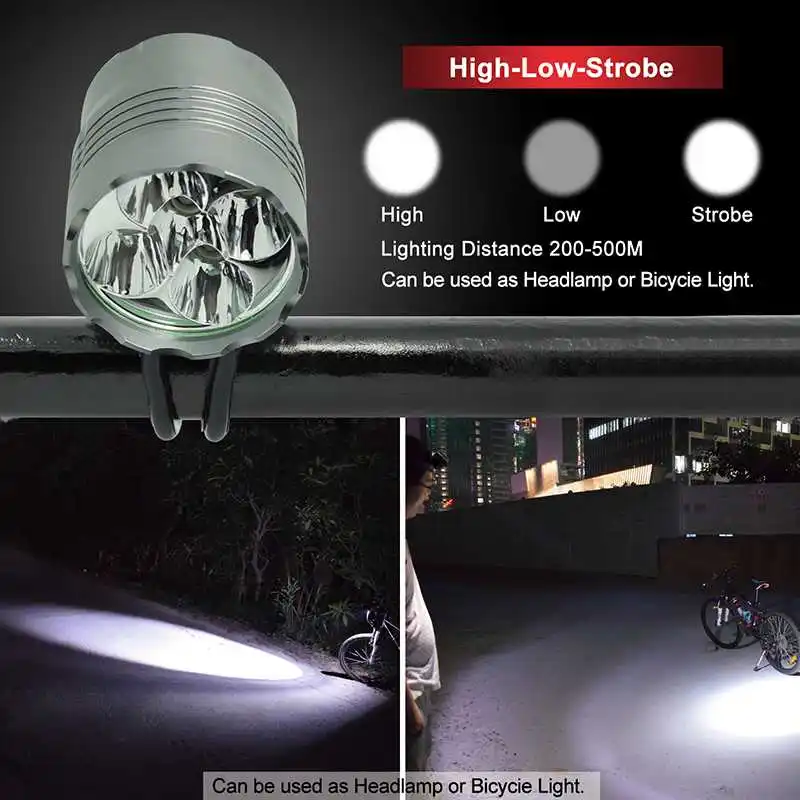 Может использоваться как налобный фонарь или велосипедный светильник