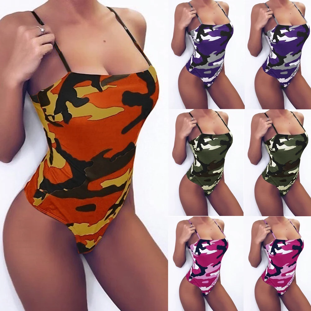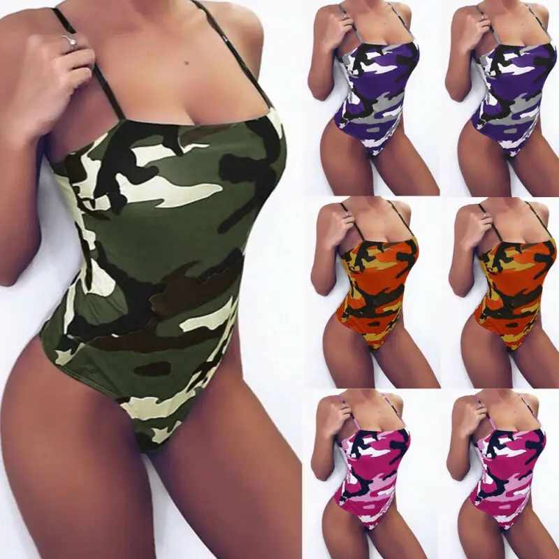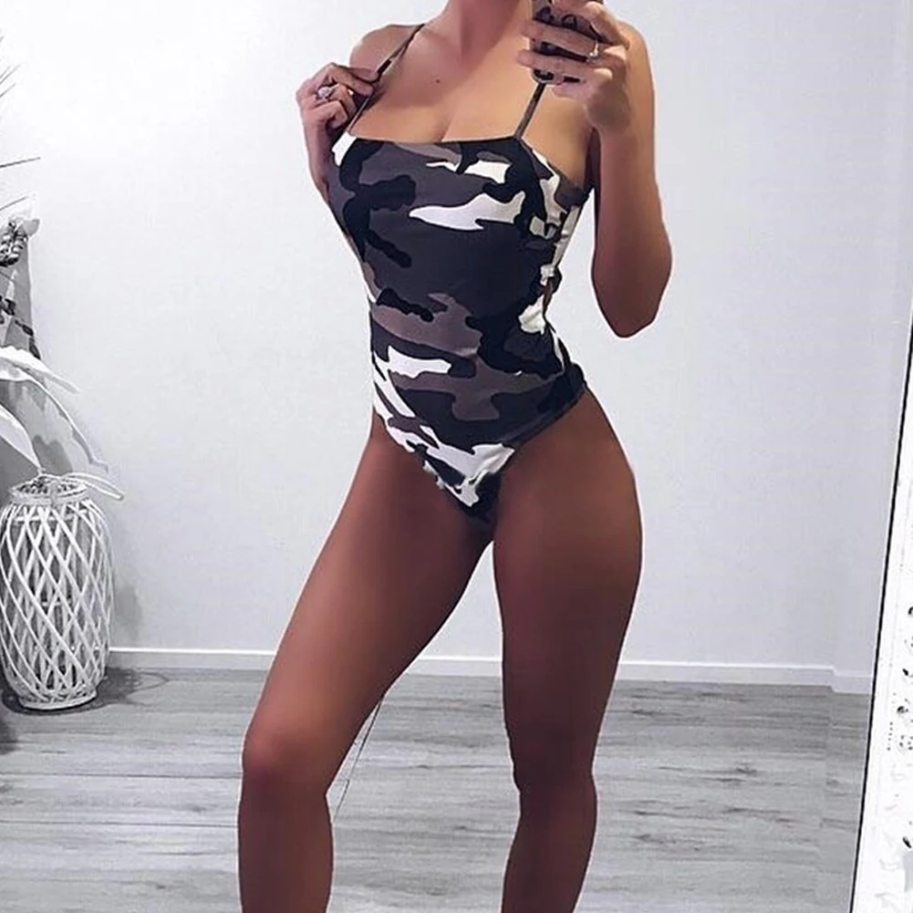 Женское боди без рукавов оверсайз, камуфляжный облегающий купальник-бандо, короткий комбинезон, топ, одежда для женщин, 2019