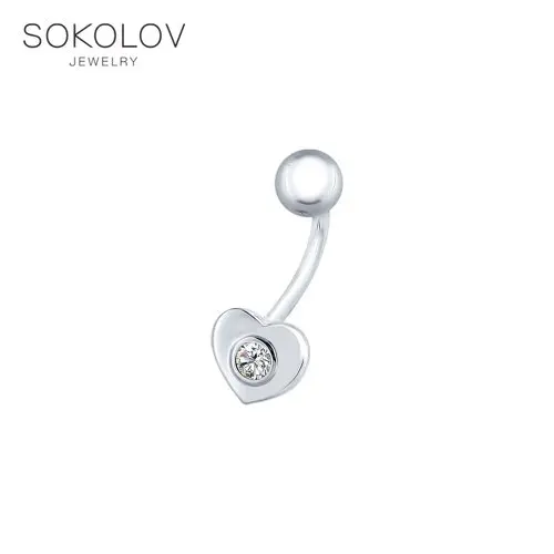 Пирсинг в пупок SOKOLOV из серебра с фианитом, Серебро, 925, Оригинальная продукция