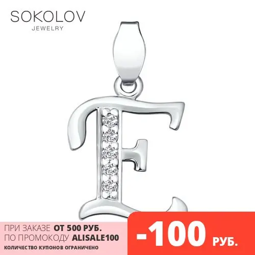 Серебряная подвеска-буква Е SOKOLOV, Серебро, 925, Оригинальная продукция