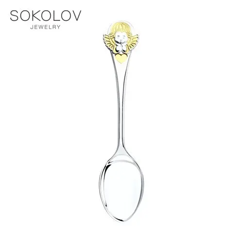 Ложка детская Ангелочек позолота SOKOLOV, Серебро, 925, Оригинальная продукция