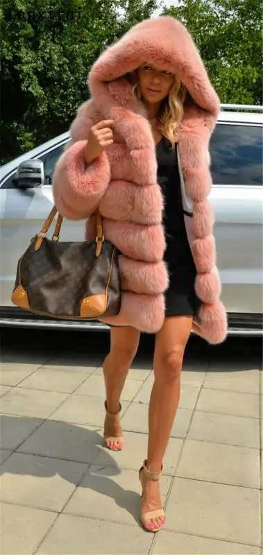 Пальто женское из искусственного меха, с длинным рукавом и капюшоном, зимнее, размера плюс