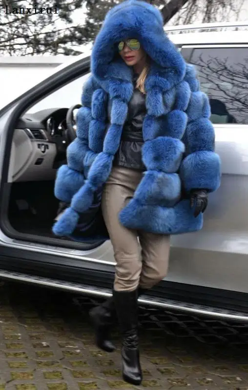 Женское пальто с воротником из лисьего меха, длинное теплое пальто ...