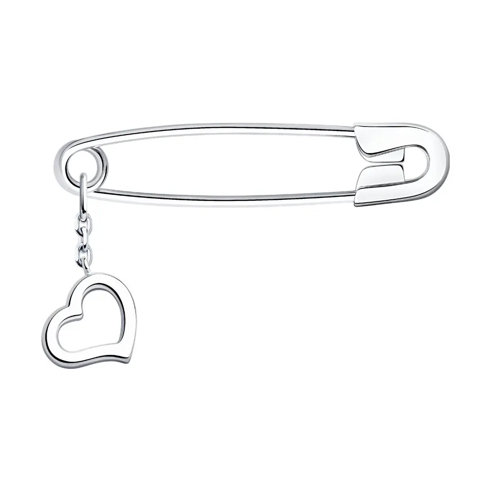 Серебряная булавка с подвеской в форме сердца SOKOLOV