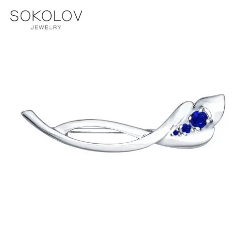 Брошь SOKOLOV из серебра с синими фианитами, Серебро, 925, Оригинальная продукция