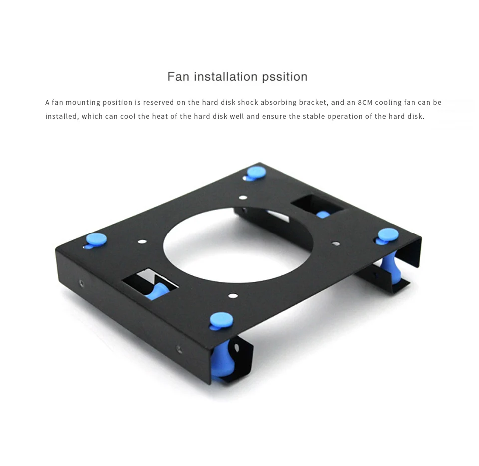 Характеристики:Модель: 3,5 "до 5,25"Материал: металлический кронштейн + резиновые гвоздиРазмер: 145x123x30 ммОсобенности:Защита жесткого диска: при работе жесткого диска настольного компьютера, блюдо вращается на высокой скорости 7200 об./мин., что реализует хранение данных для чтения и записи. При установке на шасси будет создавать дрожание, резонанс и шум. В долгосрочной перспективе это приведет к повреждению жесткого диска. Поэтому важно устранить резонанс и шум, с целью защиты жесткого диска от амортизации жесткого диска и кронштейна шумоподавления.Активный амортизирующий силикагель: Активный органический силикагель-особый материал, обладающий высокой прочностью и твердостью. Обладает устойчивыми свойствами материала и хорошим амортизационным и шумоподавляющим эффектом. В качестве стойки используется активный гибкий силикон, который превосходит поглощение вибрации и экологически безопасен.Место установки вентилятора: место установки вентилятора зарезервировано на жестком диске амортизирующий кронштейн, можно установить охлаждающий вентилятор 8 см. Благодаря этому жесткий диск хорошо отводит тепло и охлаждает, обеспечивая стабильную работу жесткого диска.Подходит для большинства шасси с оптическим приводом, а один кронштейн занимает один оптический привод. Подходит для любого переднего отсека 5,25 дюйма.Этапы установки:1. Установите две барьерные полосы с помощью отвертки с обеих сторон жесткого диска.2. Установленная Барьерная полоса застряла в амортизирующем силиконе, и две стороны должны быть застряли.3. Установите установленный жесткий диск в положение привода шасси.Комплектация:1x жесткий диск кронштейн для амортизатораРезиновый гвоздь 6x2x фиксированная металлическая лентаКрепежные винты 8x