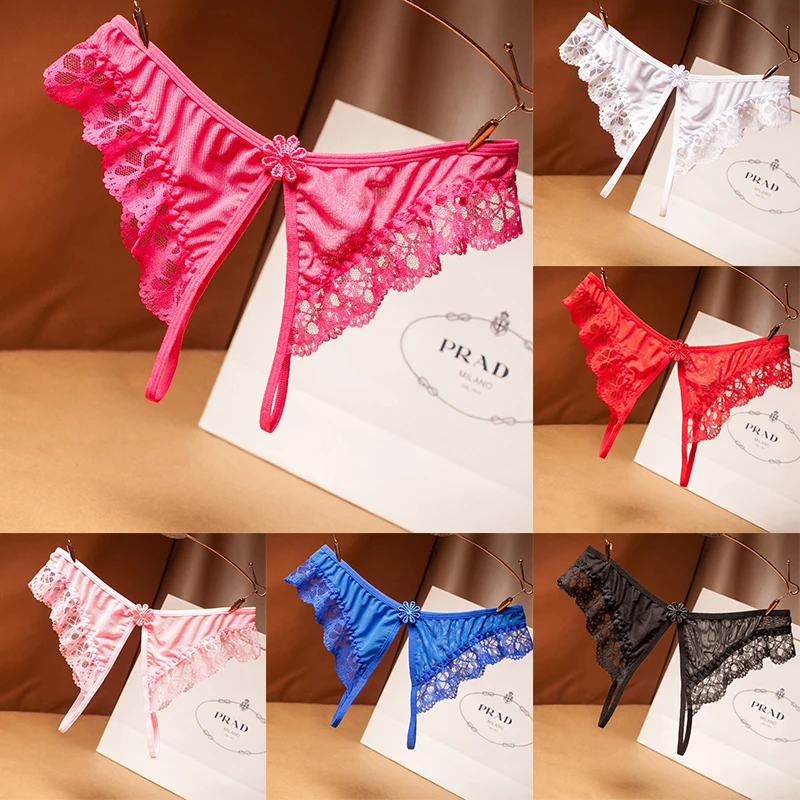 Женские сексуальные кружевные прозрачные трусики с открытой промежн...