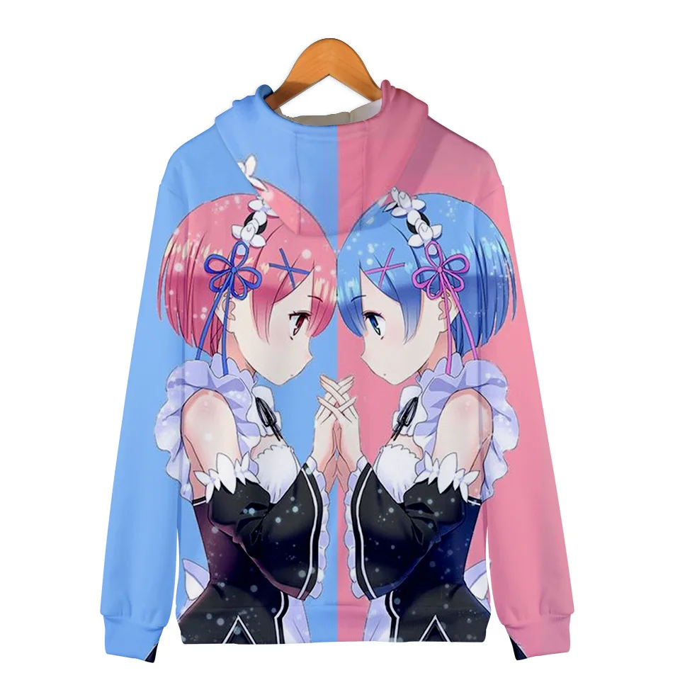 Толстовка с капюшоном Re Zero для мужчин и женщин в японском стиле, куртка на молнии, пальто, свитшот, одежда для детская одежда для девочек, пальто на молнии