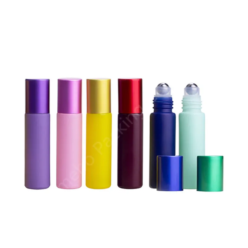 Пустые 10 мл кремовые цветные голубые/зеленые/фиолетовые/красные/розовые/желтые стеклянные бутылки в рулоне маленькие бутылки для образцов эфирного масла