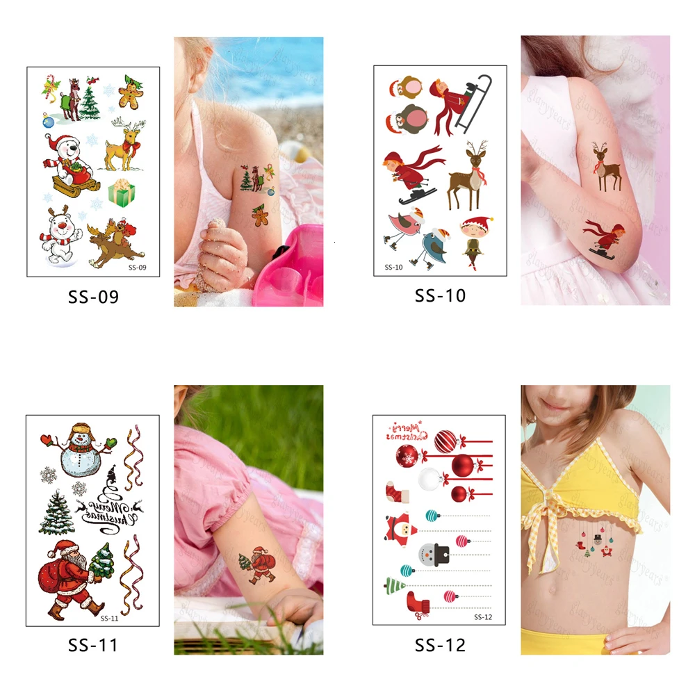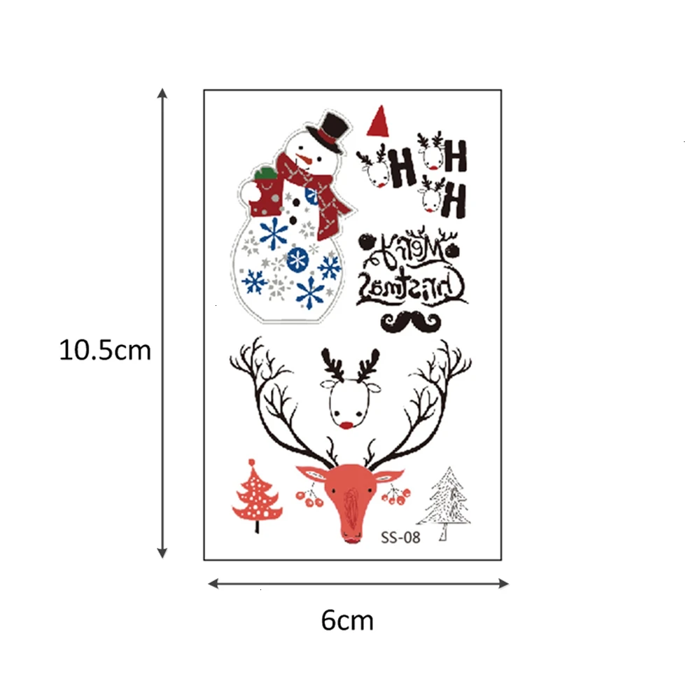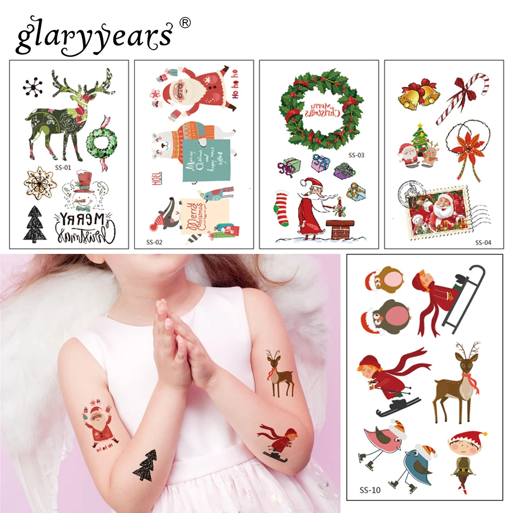 Временные татуировки glaryyears, 1 лист, 10,5 х 6 см, детские, наклейки, рождественские, небольшие, боди-арт, узор Санта-Клауса, оленя, макияж, водостойкие