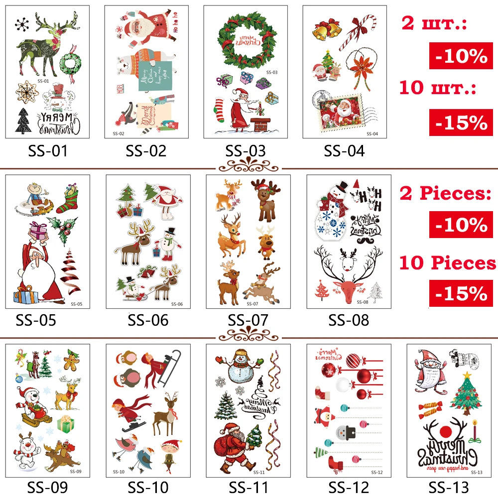 Temporary Tattoo DesignChristmas / Santa Claus / Animal / Tree / Party