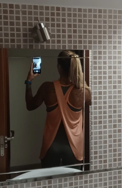 Эта Майка похожа на фартук, для йоги не очень подойдёт, но для фитнесса вполне. Качество хорошее.