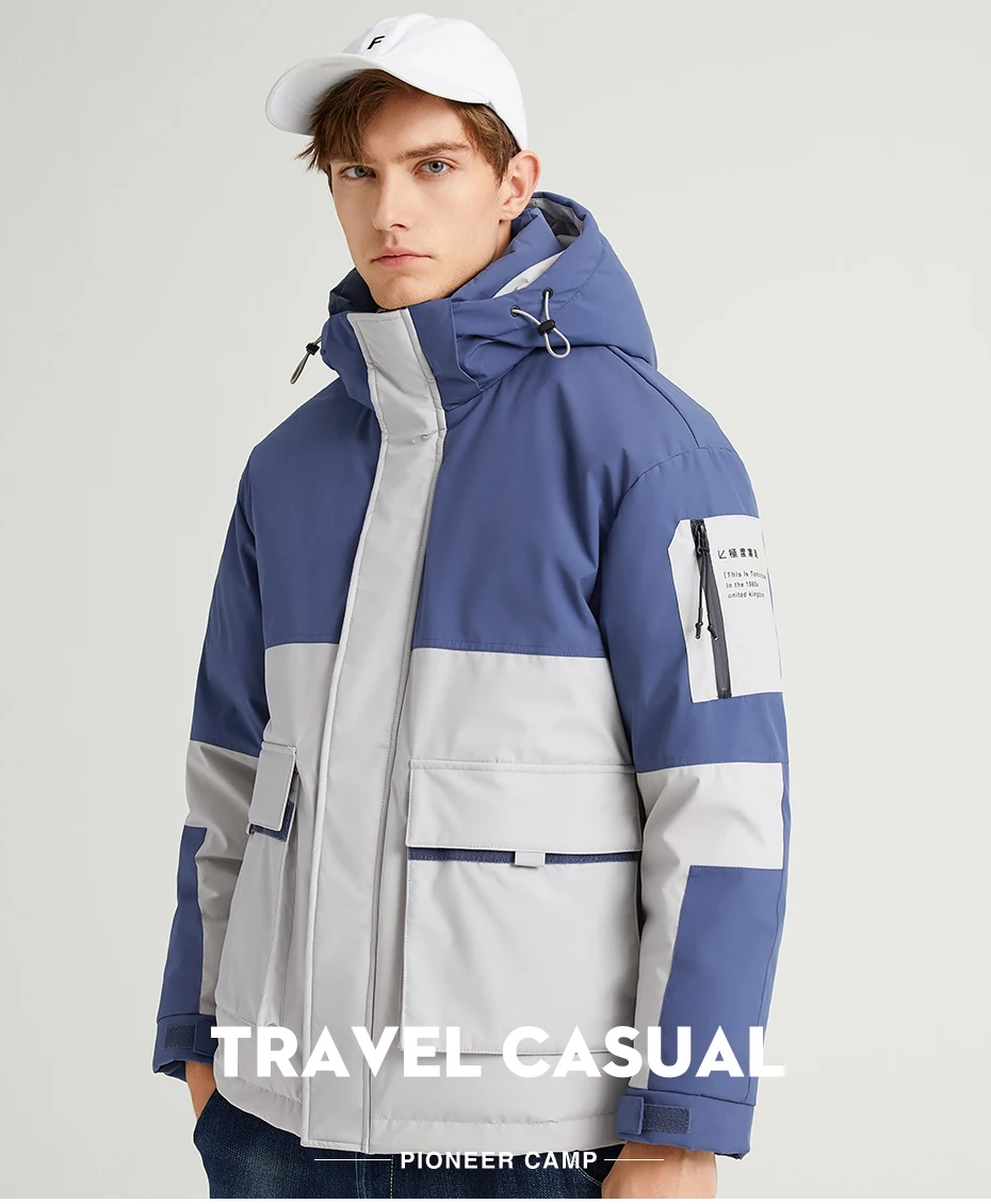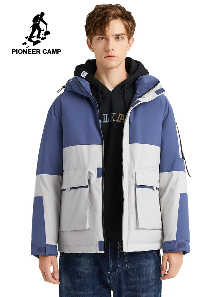 Пионерский лагерь, Модный Зимний пуховик, мужской, синий, черный, Costuras, толстый, с капюшоном, мужские теплые пальто, AYR901518T