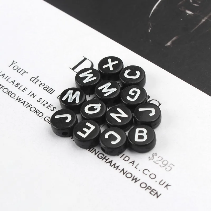 Наименование товара:100 шт. черные разноцветные акриловые бусины с английскими буквами плоские круглые бусины с алфавитом для самостоятельного изготовления ювелирных изделий Аксессуары для браслетов
