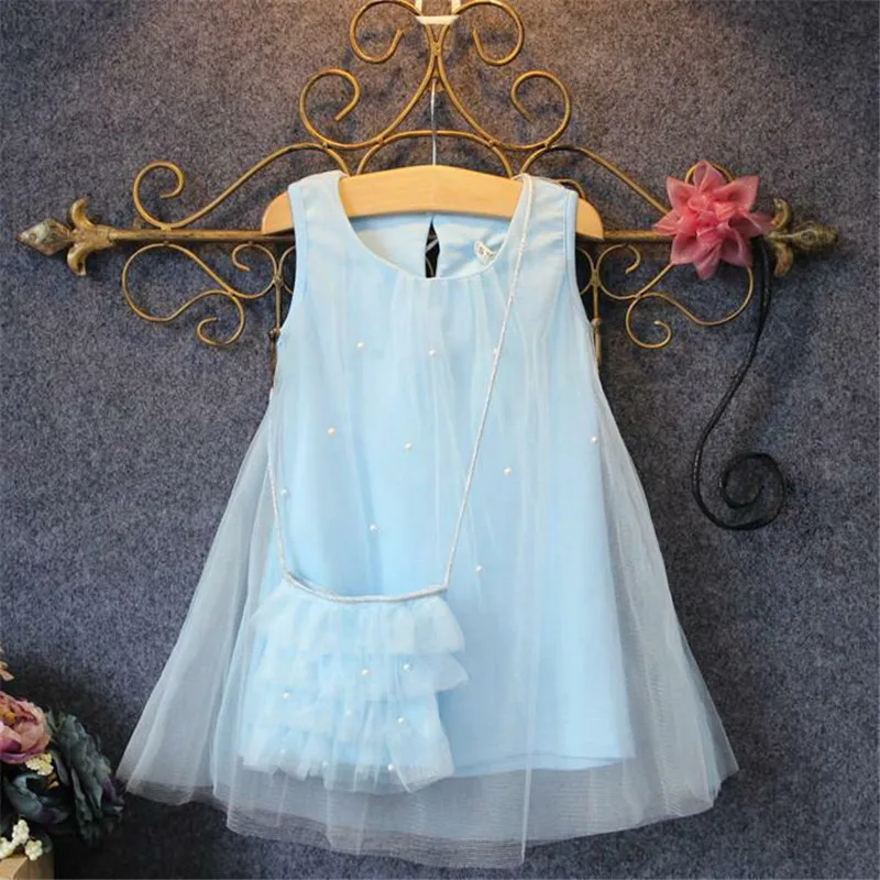 Детское летнее праздничное платье принцессы без рукавов, с жемчугом...