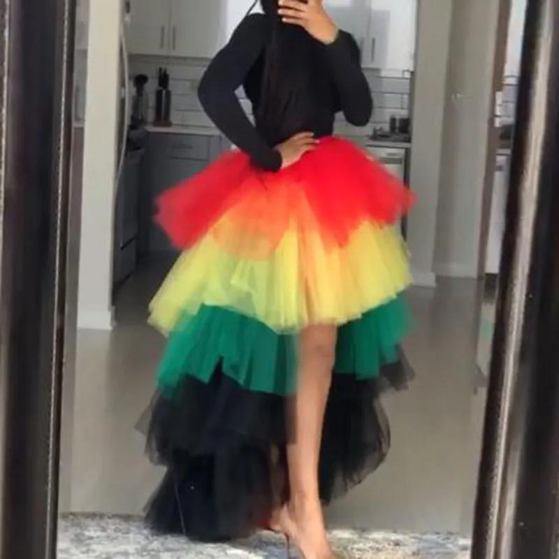 Асимметричные многоуровневые тюлевые юбки с высоким низом для женщин, многоцветная Длинная женская юбка-пачка 2020, юбка радужной расцветки на заказ