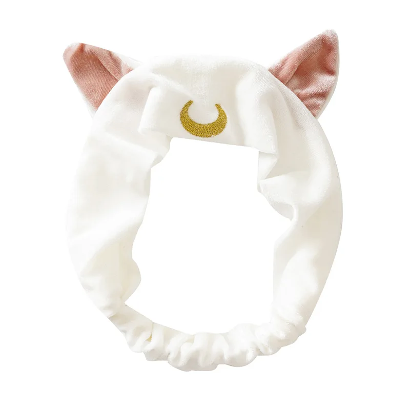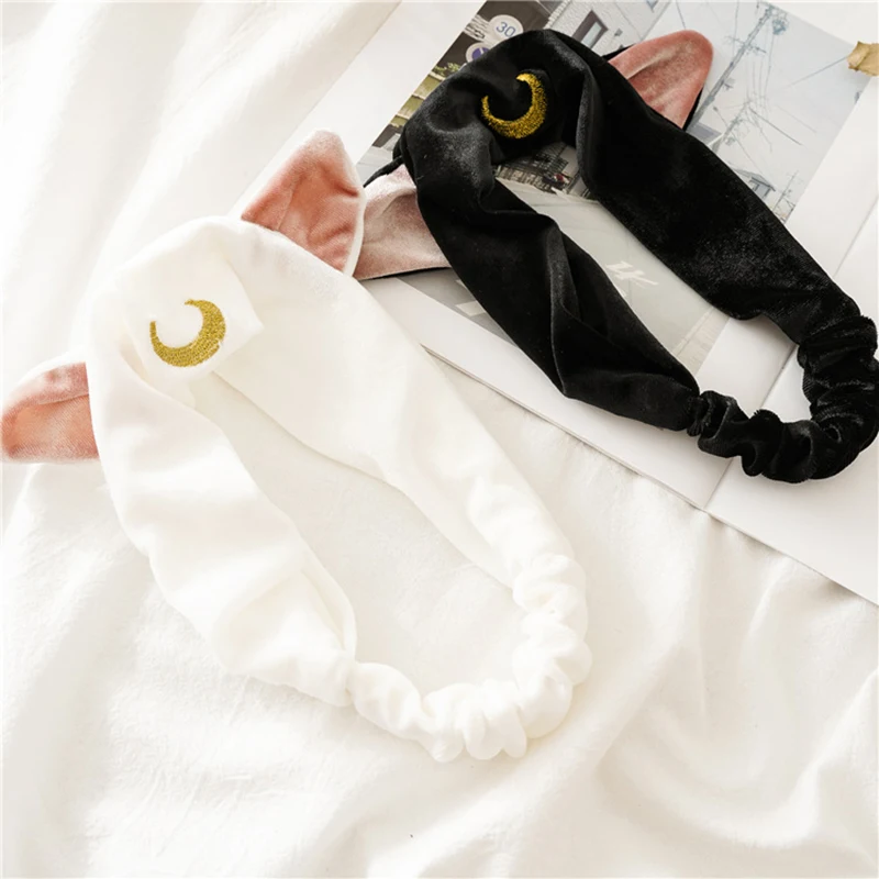 Мягкая эластичная повязка на голову с милыми мультяшными лунами и кошачьими ушками для мытья лица, макияжа, йоги, женские резинки для волос на осень и зиму, аксессуары для волос