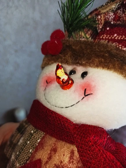 Я так рада, что пришёл снеговичок так быстро, успел до нового года, он такой милый, настроение прямо уже праздничное. Огромное спасибо продавцу, не пришлось общаться все хорошо, без брака. После Нового года будет всё равно стоять на тумбочке, реально глядя на него настроение подымается.