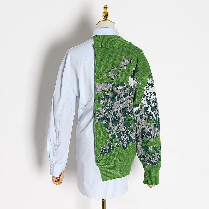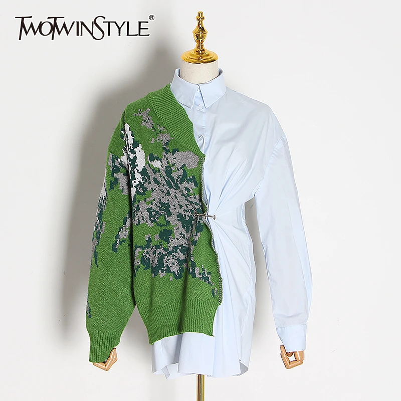 Женская рубашка с воротником-стойкой TWOTWINSTYLE, асимметричная, с высокой талией