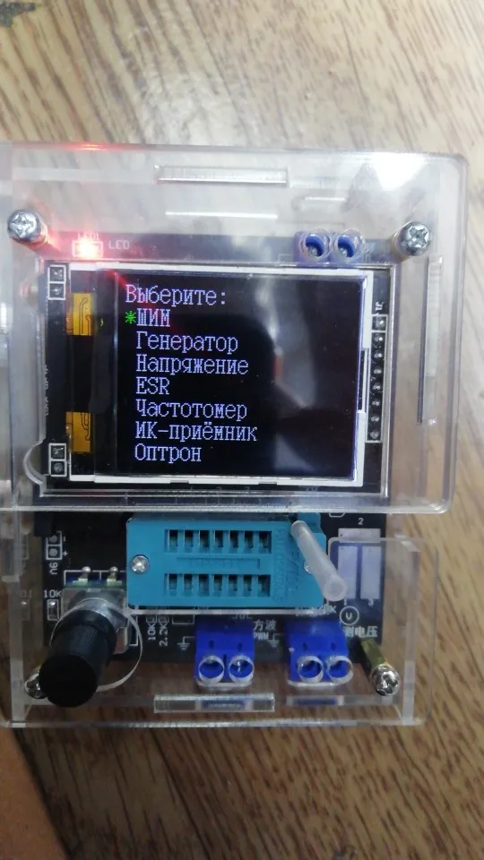 Заказ пришел вовремя.Версия прошивки русская.По работе прибора показывает значения нормально.Подключил через блок питания примерно на 8 вольт.Всё работает.Откплибровал перемычкой и конденсатор ом на 220 пикофарад.Слишкои ярко горит красный светодиод питания,надо будет чем нибудь закрыть.Корпус собрался всё хорошо.