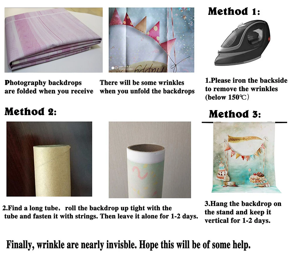 1. Пожалуйста, используйте систему профессиональной фоновой рамы, с зажимом висящего фона.2. Для семейной фотографии Используйте ленту, чтобы приклеить фон к стене. (будьте осторожны, лента может повредить стену).3. Лучше держать некоторое расстояние, когда вы делаете фотографии.