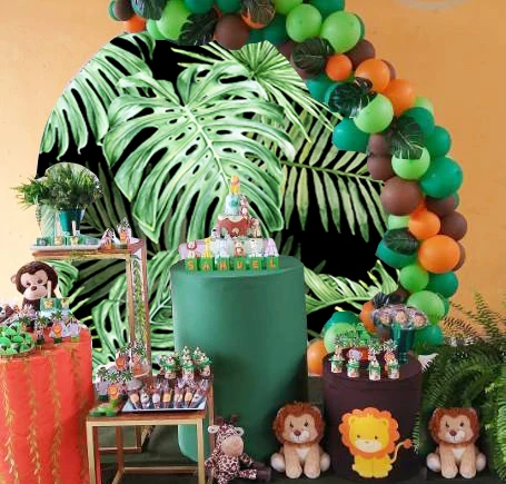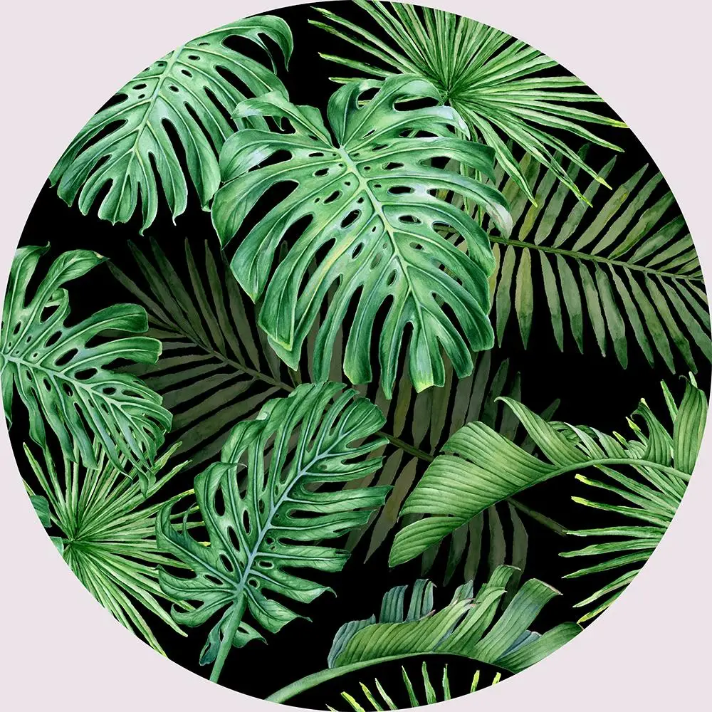 Тропические растения зеленые листья на тему день рождения фон baby shower дети ярких цветов баннер круглая панель круглый фон Y-09