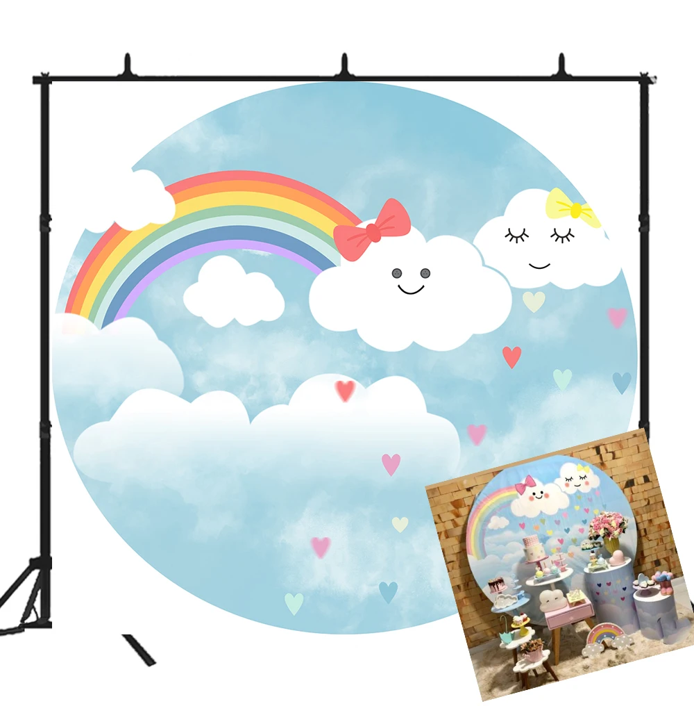 Милый фон с облаками для дня рождения, постер с небом, радугой, детский душ, круглая сцена, Настенный декор, баннер, фон Y07
