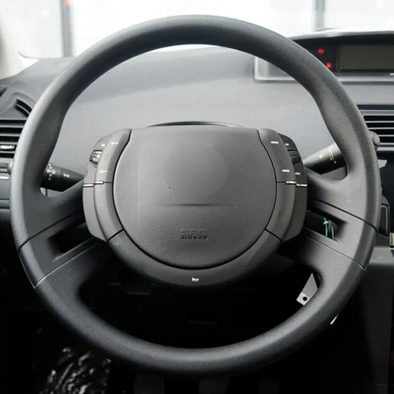 Чехол рулевого колеса автомобиля из искусственной кожи DIY сшитый вручную черный чехол на руль для Citroen C4 Picasso 2007-2013
