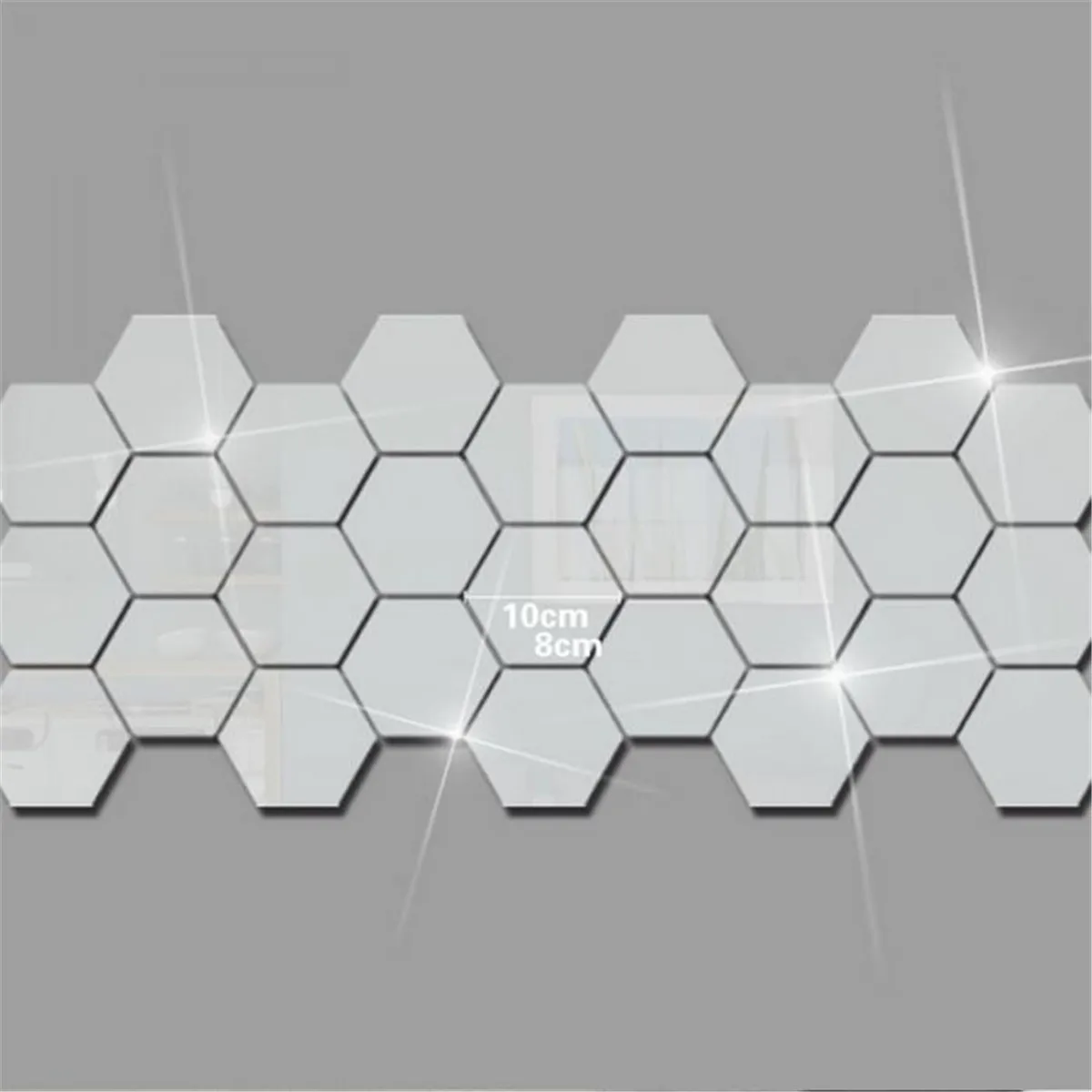 Акриловая Зеркальная Наклейка на стену, шестиугольная, 12 шт.