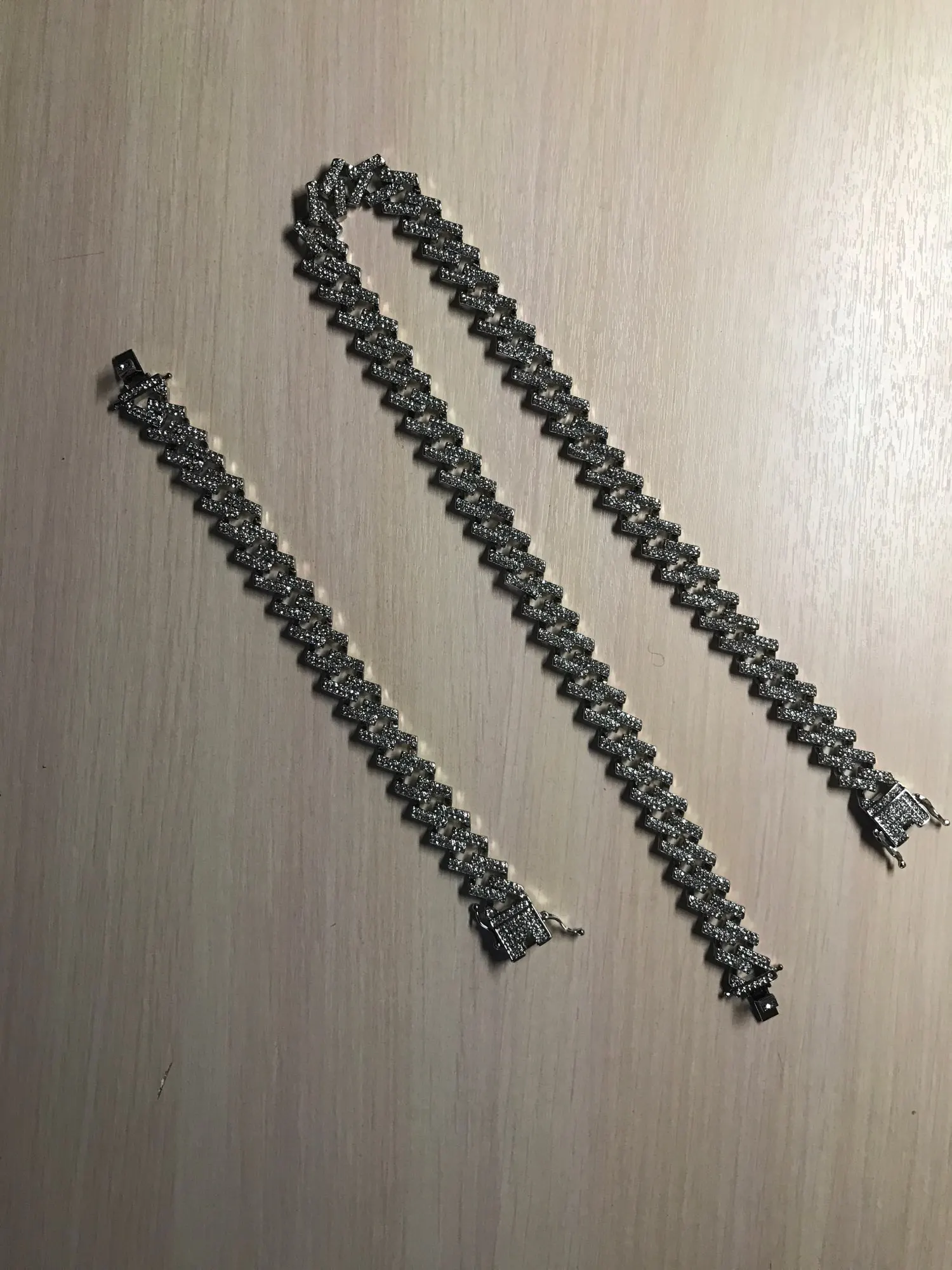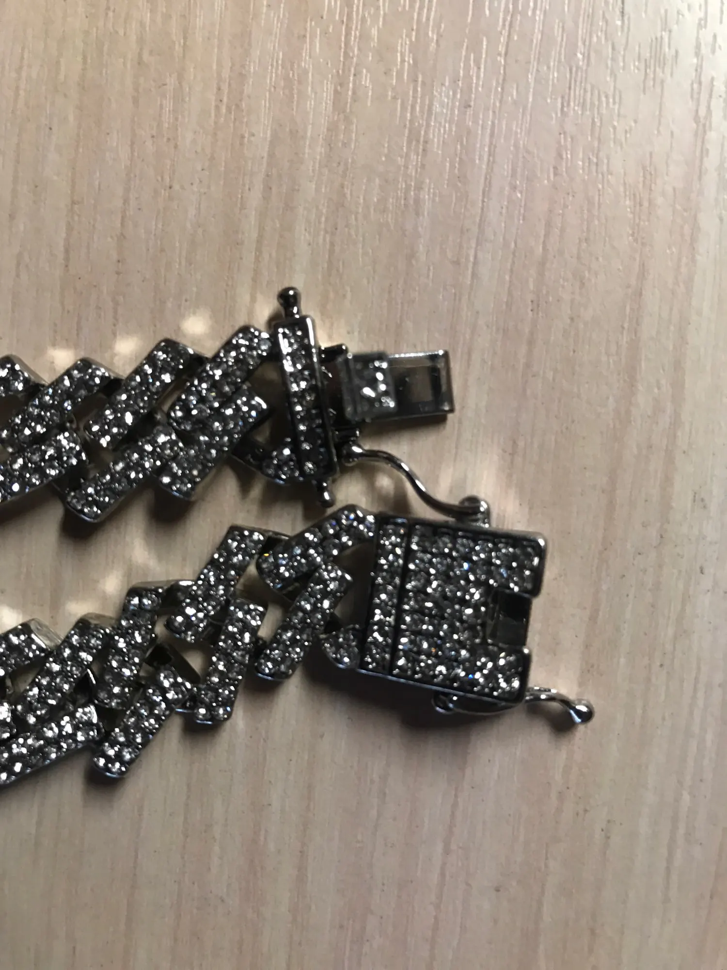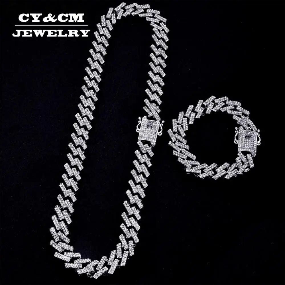 Цепочка с кубинскими звеньями Майами, 15 мм, со стразами, застежка для стразы, хип-хоп, мужское ожерелье, браслет
