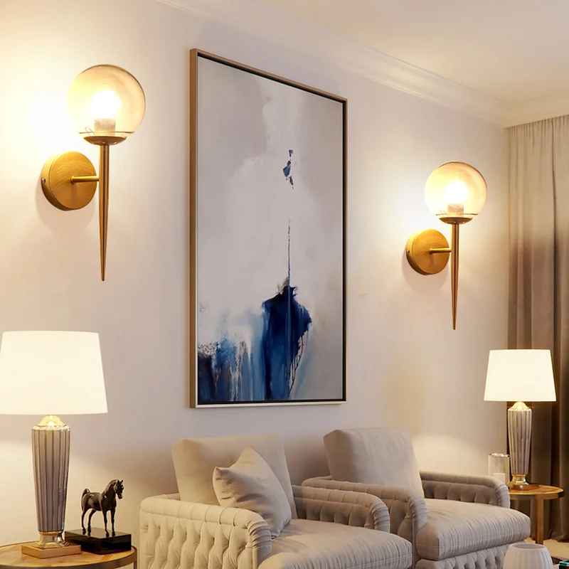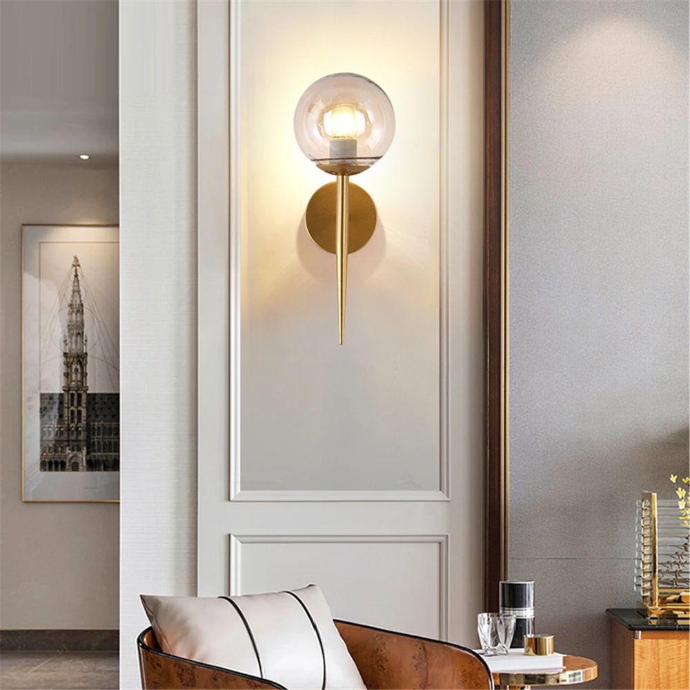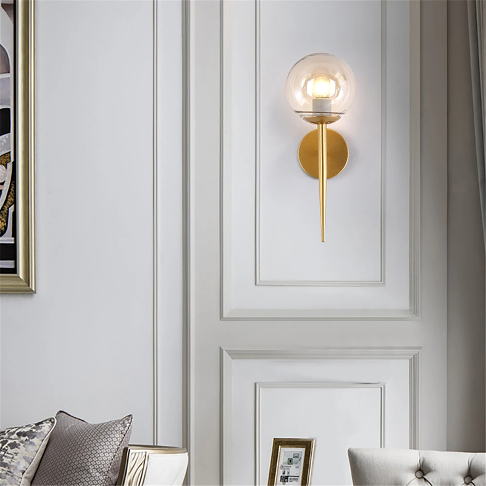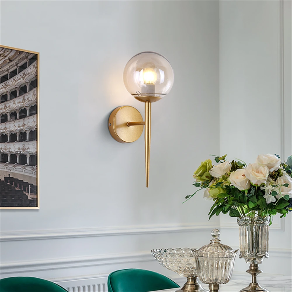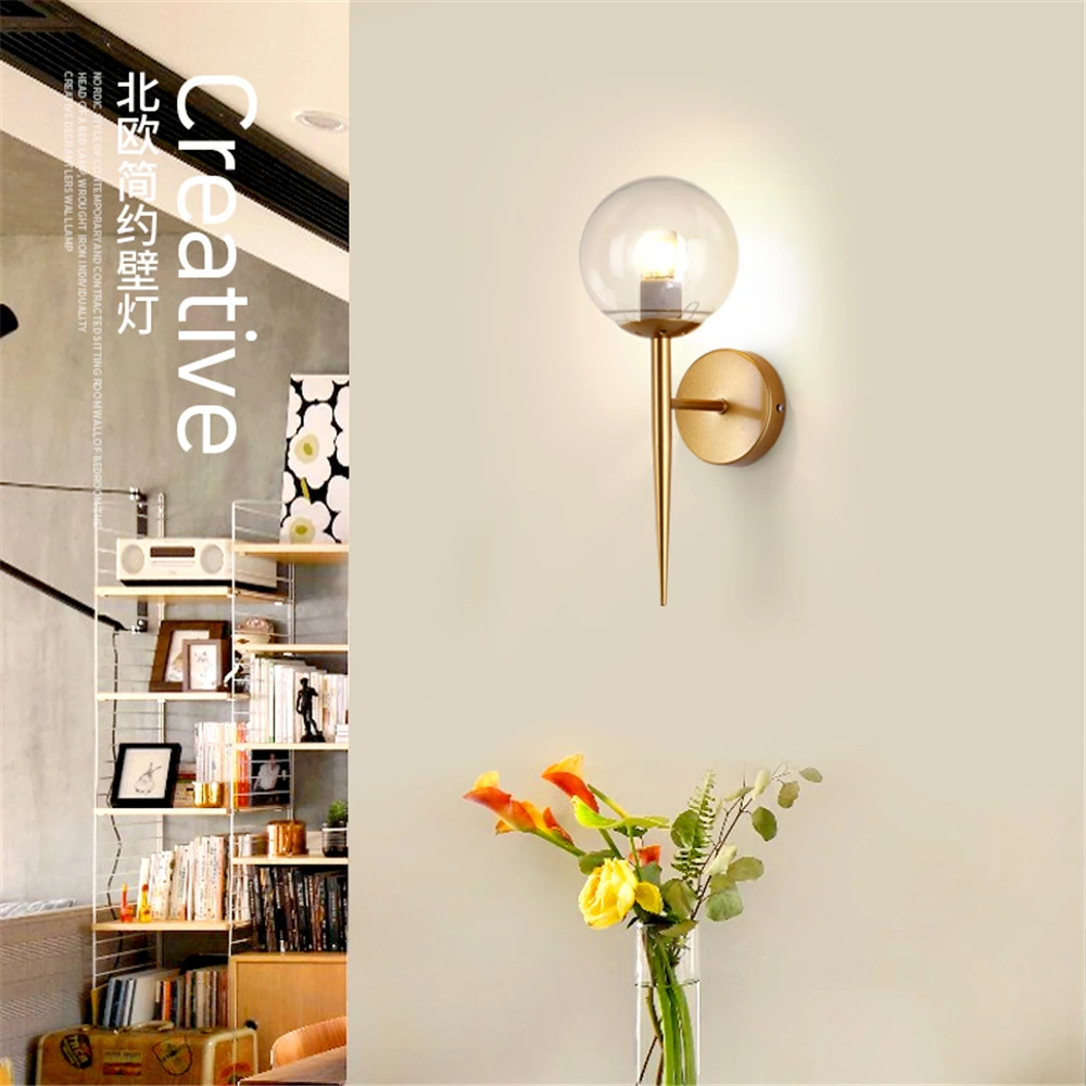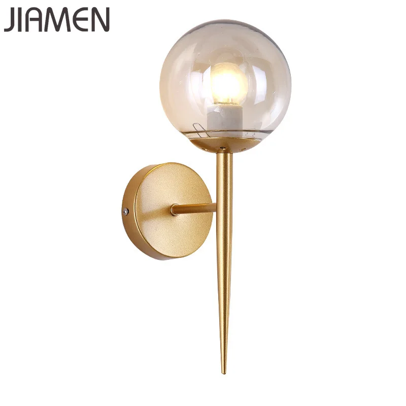 Современная Золотая настенная лампа JIAMEN, светодиодные Настенные светильники E27, круглые стеклянные светильники для дома, гостиной, спальни, кухни, коридора, украшение